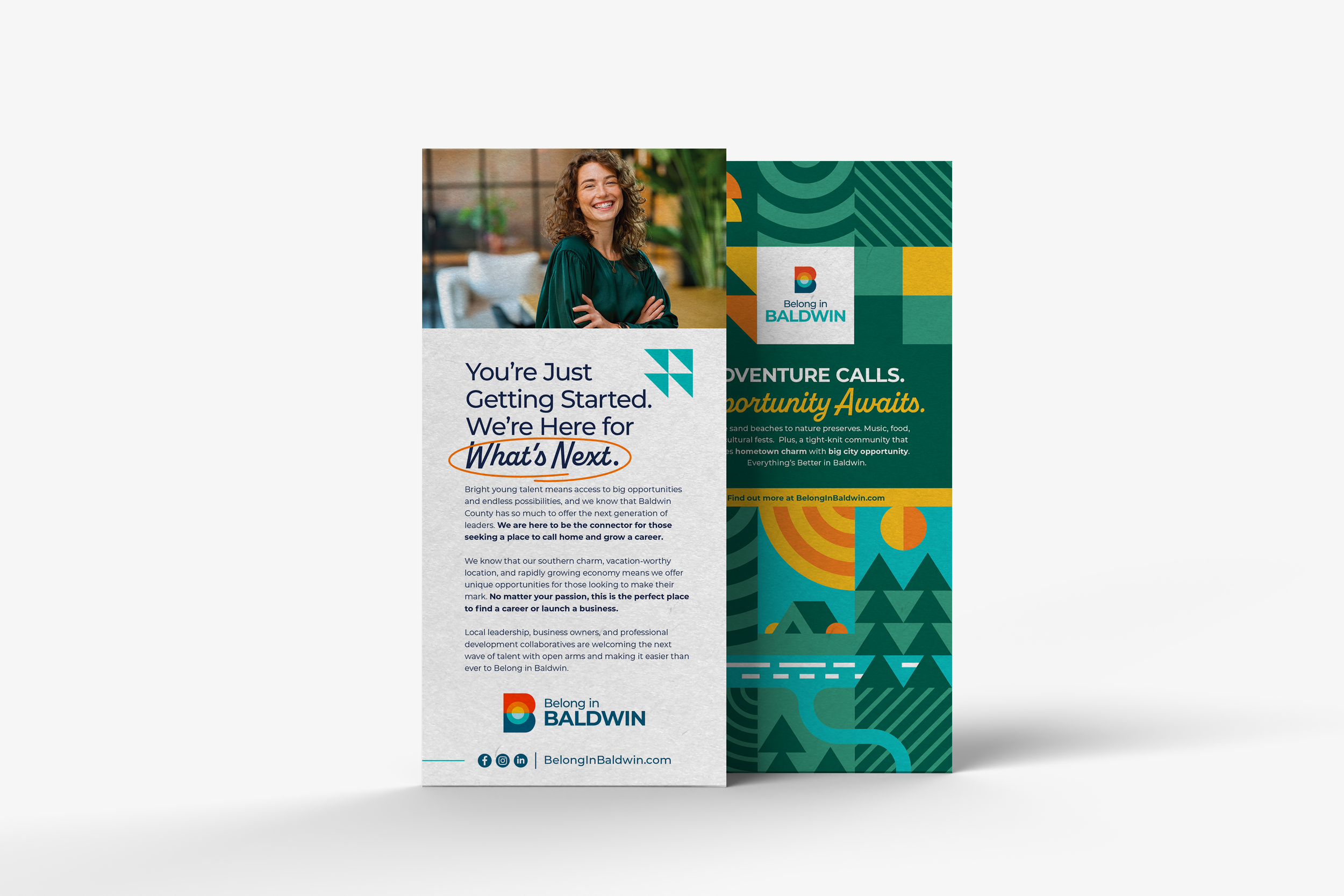 For the Baldwin County Economic Development Alliance, we were asked to help tackle a real challenge: how to keep local talent in place and attract new professionals to a region that’s growing fast but often overlooked. Baldwin County is one of the fastest-growing metro areas in the U.S., yet many college graduates and skilled workers were still heading to bigger cities. Our goal with Belong in Baldwin was to build a brand and digital platform that not only spotlighted the opportunities here but made Baldwin County feel like a place where people could belong, grow their careers, and build a life.