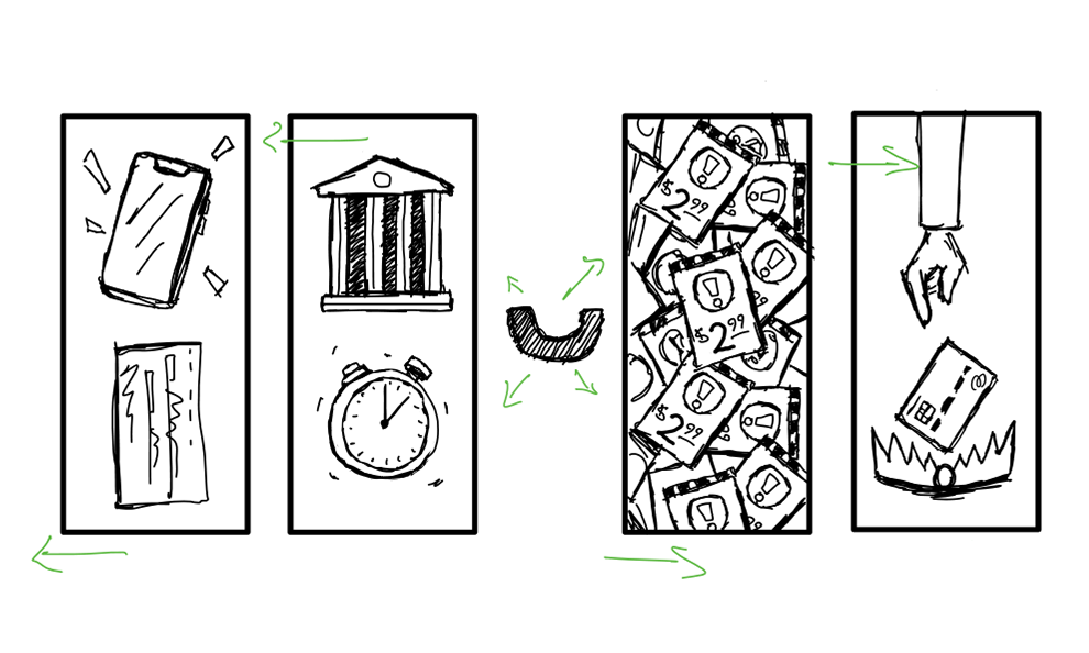Financial concepts like savings, debt, and payment options were translated into simple visual metaphors to keep the story clear and engaging.